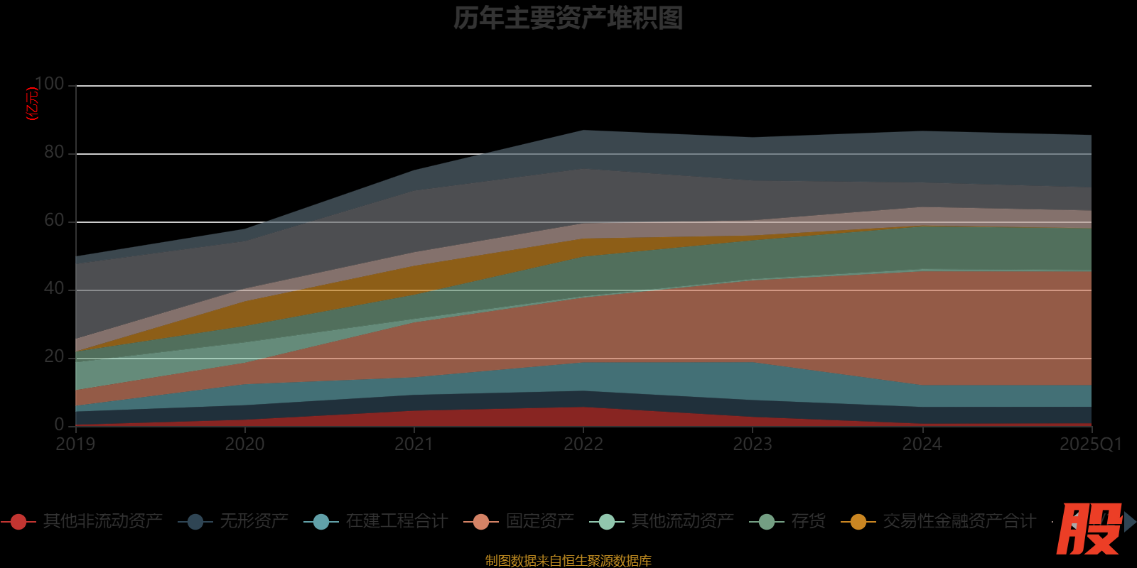 资产重大变化方面,截至2025年一季度末,公司固定资产较上年末减少0.05%,占公司总资产比重上升0.52个百分点;预付款项较上年末增加46.34%,占公司总资产比重上升0.46个百分点;交易性金融资产合计较上年末减少100%,占公司总资产比重下降0.35个百分点;货币资金较上年末减少5.32%,占公司总资产比重下降0.33个百分点。