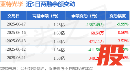 本站消息创达盈,6月17日,蓝特光学(688127)融资买入547.58万元,融资偿还1939.37万元,融资净卖出1391.8万元,融资余额1.24亿元。