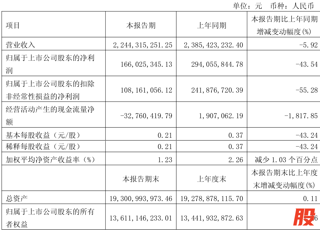 中证智能财讯三角轮胎(601163)4月26日披露2025年第一季度报告。公司实现营业总收入22.44亿元,同比下降5.92%;归母净利润1.66亿元,同比下降43.54%;扣非净利润1.08亿元,同比下降55.28%;经营活动产生的现金流量净额为-3276.04万元,上年同期为190.71万元;报告期内,三角轮胎基本每股收益为0.21元,加权平均净资产收益率为1.23%。