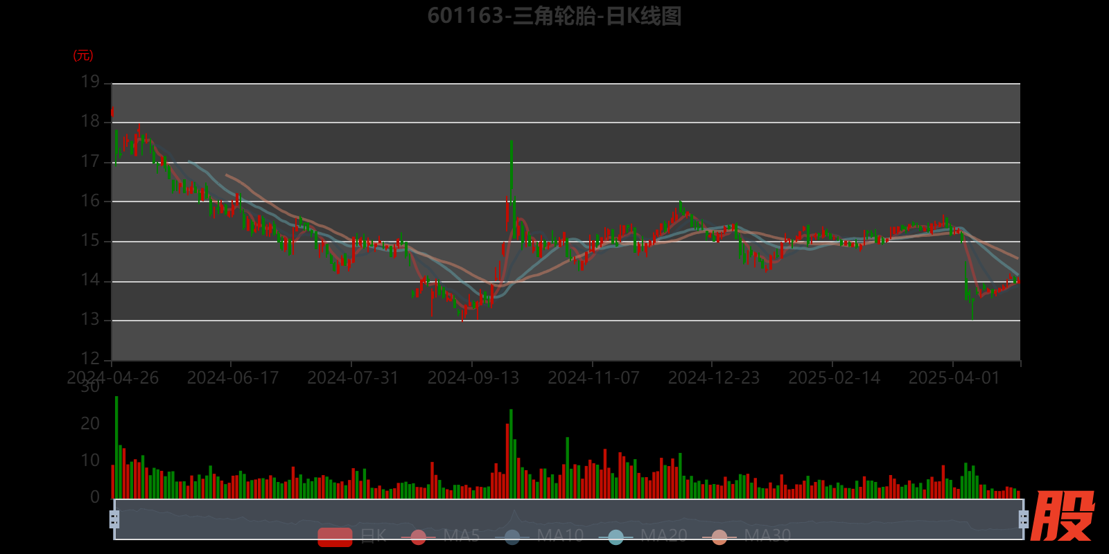 以4月25日收盘价计算,三角轮胎目前市盈率(TTM)约为11.5倍,市净率(LF)约0.82倍,市销率(TTM)约1.12倍。